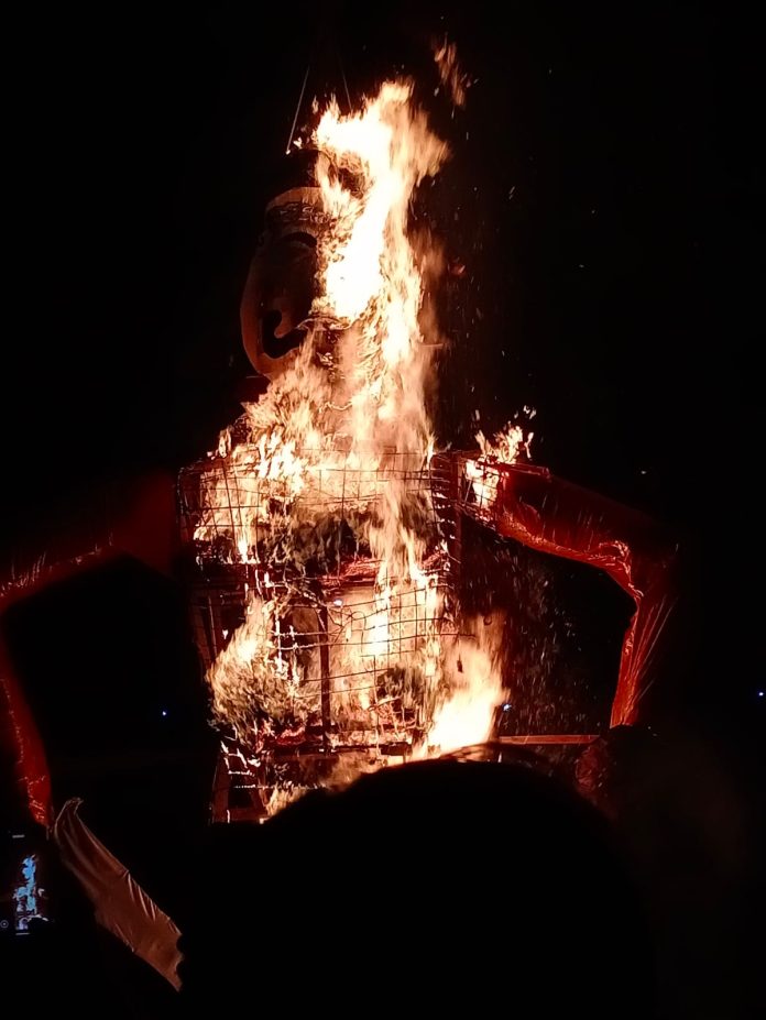सत्याने असत्यावर… सृष्टांनी दुष्टावर अन् देवांनी असुरांवर मिळविलेल्या विजयाचे प्रतीक असलेल्या रावण दहनाचा कार्यक्रम विजयादशमीला सायंकाळी गोदेच्या खळाळत्या प्रवाहाच्या साक्षीने श्रीक्षेत्र रामकुंड येथे फटाक्यांच्या आतषबाजी करत मोठ्या उत्साहात पार पडला. याप्रसंगी गोदाघाट गर्दीने फुलून गेला होता.