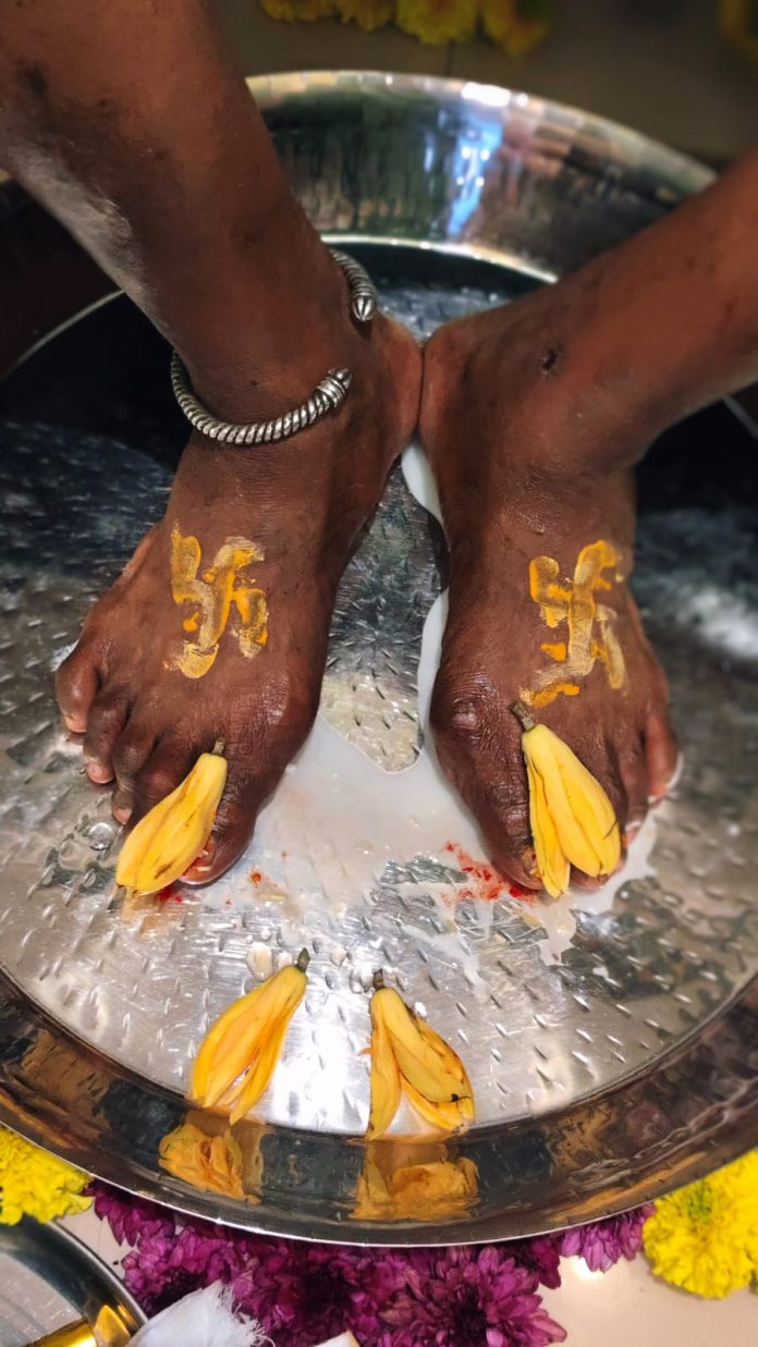 दुपारनंतर गुरुवर्य श्री. नाथस्वामी यांचा पाद्यपूजन सोहळा उत्साहात संपन्न झाला. हजारो भाविकांनी पाद्यपूजन करून गुरूंविषयी कृतज्ञता व्यक्त केली. सद्गुरु श्री. नाथस्वामी गेल्या दोन तपाहून अधिक काळ दीन,दुःखीत, पीडित लोकांना मार्गदर्शनाच्या माध्यमातून स्वामी कार्य विनामूल्य करीत आहेत. भांबावलेल्या भाविकांना धीर, दिलासा आणि धैर्य देण्याचे कार्य या मठाच्या माध्यमातून होते. त्यामुळे मठामध्ये दिवसेंदिवस भाविकांची गर्दी वाढू लागली आहे. गुरुपौर्णिमेच्या दिवशी पाद्यपूजनानंतर सायंकाळी आरती आणि त्यानंतर श्री नाथस्वामी यांचा सत्संग पार पडला. गुरुपौर्णिमेनिमित्त सर्वांना प्रसादाचे वाटप करण्यात आले.