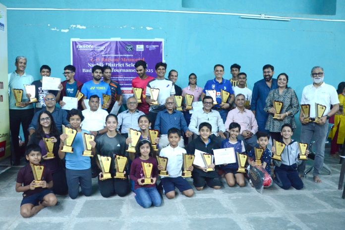 रायसोनी फाउंडेशन स्पोर्ट्स अँण्ड कल्चलर आणि नाशिक जिल्हा बॅडमिंटन संघटना यांच्या संयुक्त विद्यमाने जी. एच. रायसोनी मेमोरियल नाशिक जिल्हा बॅडमिंटन निवड चाचणी स्पर्धेचा अंतिम सामने व बक्षीस वितरण समारंभ संघटनेचे अध्यक्ष राधेशाम मुंदडा, यशवंत व्यायाम शाळेचे अध्यक्ष दिपक पाटील तसेच आशिष वट्टेवार यांच्या अध्यक्षतेखाली संपन्न झाला. यावेळी व्यासपीठावर संघटनेचे सचिव पराग एकांडे, योगेश एकबोटे व अनंत जोशी उपस्थित होते.