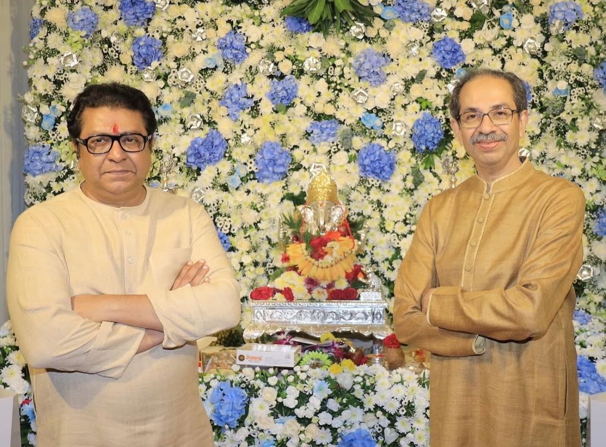 शिवसेना ठाकरे गटाचे प्रमुख उद्धव ठाकरे यांनी मनसे प्रमुख राज ठाकरे यांच्या निवास जाऊन गणपतीचे दर्शन घेतले. राज ठाकरे यांनी शिवसेना पक्ष सोडल्यानंतर तब्बल २२ वर्षांनी उद्धव ठाकरे हे राज ठाकरे यांच्या घरी गेले.