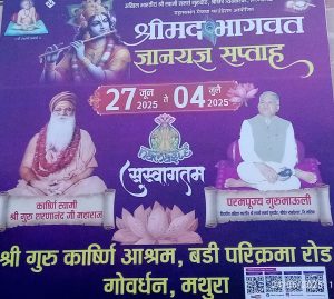 भगवान श्रीकृष्णाची पुण्यभूमी असलेल्या मथुरेमधील श्रीगोवर्धन पर्वताच्या पायथ्याशी अत्यंत चैतन्यदायी वातावरणात श्री स्वामी सेवामार्गातर्फे २७ जूनपासून राष्ट्रहितासाठी भागवत ज्ञानयज्ञ सप्ताहाला मोठ्या उत्साहात प्रारंभ होत आहे. अखिल भारतातून समस्त सेवेकऱ्यांचे जथ्थेच्या जथ्थे भागवत नगरीत दाखल होत असून या भव्य दिव्य ऐतिहासिक सोहळ्याची तयारी आता अंतिम टप्प्यात आली आहे.